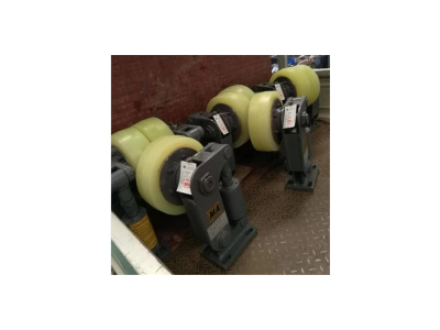 滚轮罐耳装置又称灌道轮,缓冲轮,罐笼缓冲器,滚轮,皮轮。一套为4组,一组3个,共计12个。